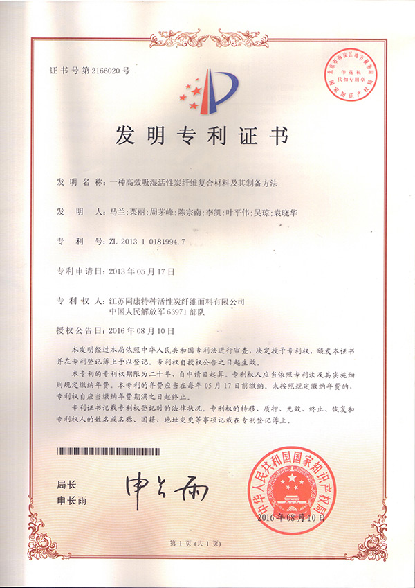 發明專利(一種高效吸濕活性炭纖維復合材料及其制備方法)
